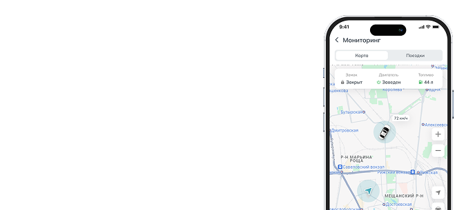 Позволяет отслеживать местоположение автомобиля на карте и сохранять историю поездок для анализа и контроля перемещений.